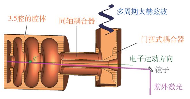基于这样的认识,以及随着激光技术和束流操控技术的提高,科学家探索出了激光加速[2]、太赫兹加速[3]、等离子尾场加速[4]等先进的加速原理。激光加速利用激光的电场加速粒子,结构非常紧凑,尺寸可以做到芯片大小。但由于激光波长非常短,相应的加速结构的加工精度要求很高,加速电场与被加速粒子的同步要求在亚飞秒量级,结构加工和相位同步都具有极大的挑战性。此外,激光电场的周期很短,可加速粒子的数目非常有限,即使在远红外波段,可承载的电荷量也只能在飞库量级。等离子体尾场加速已经在实验上实现了几十GV/m的超高加速梯度,目前研究的重要内容之一是提高束流的品质和稳定性并开拓应用,同时,获得高重复频率的束流还受限于高功率激光器的重复频率。太赫兹电磁波介于微波和光波之间,采用太赫兹电磁场加速带电粒子可以同时具有微波加速和激光加速的某些优点。首先,太赫兹电磁场的波长和脉冲长度足够短,射频击穿的阈值场强达到了GV/m的量级,因此,太赫兹加速有望实现GV/m的高加速器梯度;其次,太赫兹电磁场的波长在毫米量级,其加速结构的典型尺寸也在相同量级,可以用传统的加工方式进行加工,精度控制水平高;此外,如果太赫兹源采用光学方法产生,加速器的粒子源基于光电效应(光阴极),那么二者可以由同源的激光系统驱动,具有先天的时间同步特性,束流稳定性好。尽管具有这些潜在的优势,历史上,由于太赫兹波段的辐射源可用的峰值和平均功率有限,太赫兹加速在相当长的一段时间内发展缓慢。近几十年来,在太赫兹光谱学、成像和等离子体科学方面令人兴奋的应用推动下,太赫兹源的性能得到了快速提高:倾斜脉冲前沿、啁啾和延迟等技术,以及大面积有机晶体等新型非线性材料大大提高了基于激光脉冲的太赫兹源的太赫兹产生效率,并拓宽了可实现的光谱范围;基于电子束驱动太赫兹结构通过准光模式转换器提取高功率电磁波的太赫兹源,具有灵活性和易于光谱控制的特点。基于以上发展,太赫兹加速有加速梯度高、束流稳定性好、结构加工简便、装置紧凑、经济性好等优势,成为紧凑型加速器极具潜力的方案之一。