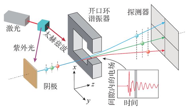 在过去的近一个世纪里,粒子加速器在利用高能对撞机、X射线光源和电子衍射仪等先进装置和仪器开展基础研究方面取得了突破性进展,发挥了重大作用。具有keV—MeV能量、fs脉冲长度结构、低发射度、低能散的高品质电子束,是凝聚态物理、材料、化学、生物等领域超快过程研究的重要探针,也是逆康普顿散射X/γ射线源和短波长自由电子激光等装置的驱动源。电子束由电子枪产生,影响其性能的重要因素是阴极表面的电场大小。电子枪的核心挑战是尽可能快地将电子从静止状态加速到高能量,以避免空间电荷效应造成的品质退化,该效应与电子能量的平方或引出场的平方成反比。电子枪的加速场越强,束流的流强上限越大,电子越快被加速到更高能量,受到空间电荷效应的影响就越小,从而获得并保持更高的亮度。因此电子枪设计追求高的阴极电场,需要解决的难题主要在于将太赫兹波与非相对论电子进行很好的相位匹配。受场发射和电场击穿的限制,目前直流高压电子枪的阴极电场约为10 MV/m,微波电子枪阴极面电场约为100 MV/m,因此,太赫兹电子枪的发展有迫切需求和巨大空间。根据驱动电子枪的太赫兹脉冲的时间结构,太赫兹电子枪的研究分为两个方向:单周期太赫兹脉冲驱动和多周期太赫兹脉冲驱动。